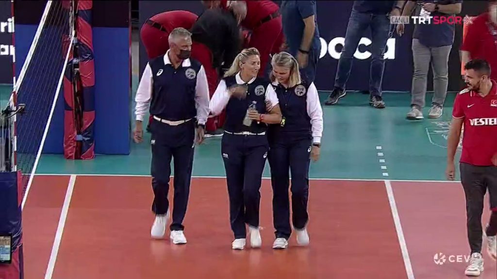Doktorların müdahalesi gecikmezken başhakem Ksenija Jurkovic, maça devam edemedi. Fenalaşmasının sebebi gizemini korurken maça Jurkovic’in yardımcı hakemi Sabine Witte devam etti.